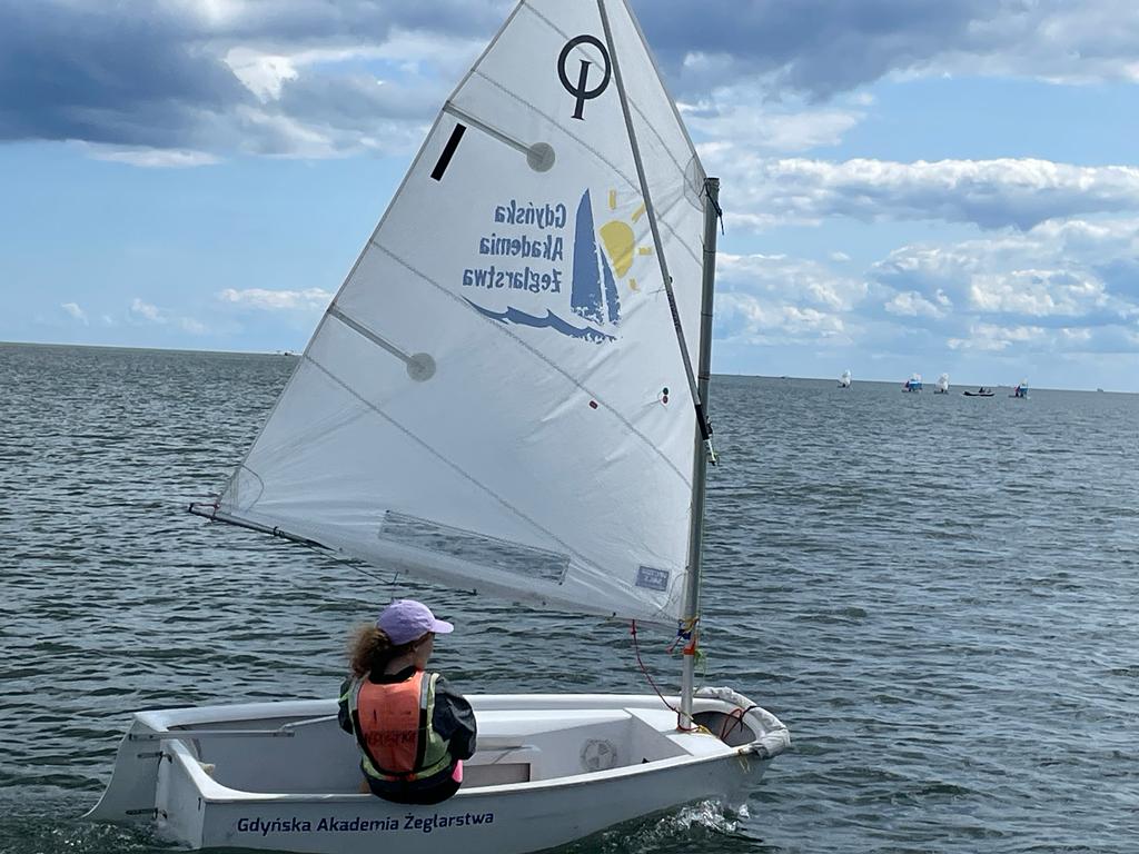 ✔ Optimist – nauka od podstaw, sterowanie, zwroty,nauka wiązania węzłow,prace bosmańskie